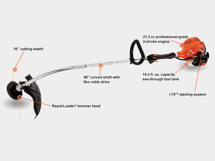 TOP FEATURES i-75™ starter reduces starting effort by 75% Ergonomic adjustable handle for a custom fit 21.2 cc professional-grade, 2-stroke engine