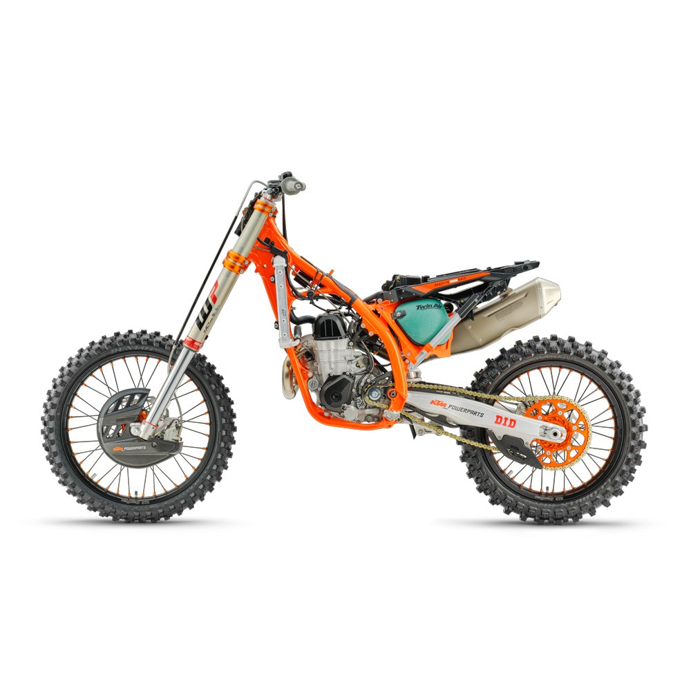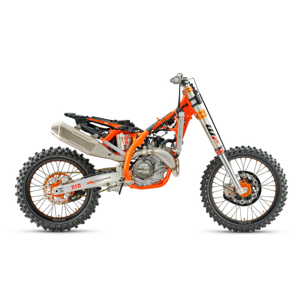 The 2026 KTM 450 SX-F FACTORY EDITION now features the class-leading WP XACT PRO 7548 fork and WP XACT PRO 8950 rear shock. This means you'll be lining up at the setting gate with the ultimate set-up, reduced weight, pristine weight distribution and acute responsiveness. |
