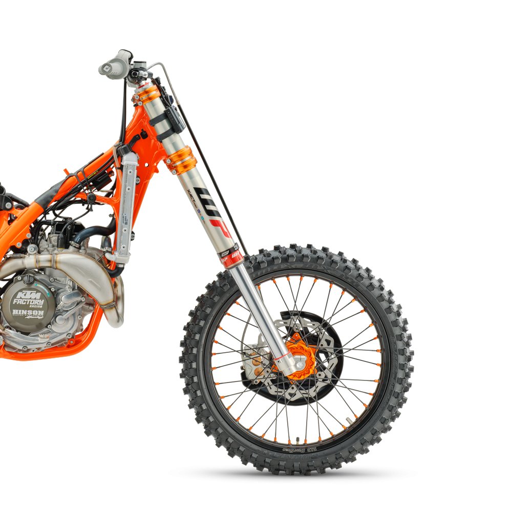 The 48 mm WP XACT PRO 7548 fork, fitted as standard, represents the pinnacle of motocross suspension -- adding a new layer of performance and adjustability. More than just suspension, it's a secret weapon for faster lap times and total confidence in every section of the track. It delivers unrivaled comfort, pinpoint response, and rock-solid bottoming resistance to the MY26 FACTORY EDITIONS. The XACT PRO 7548's unique valve system and friction-optimized components work in harmony to absorb harsh landings without compromising support, delivering consistent damping lap after lap and instilling rider confidence in all track conditions. |
